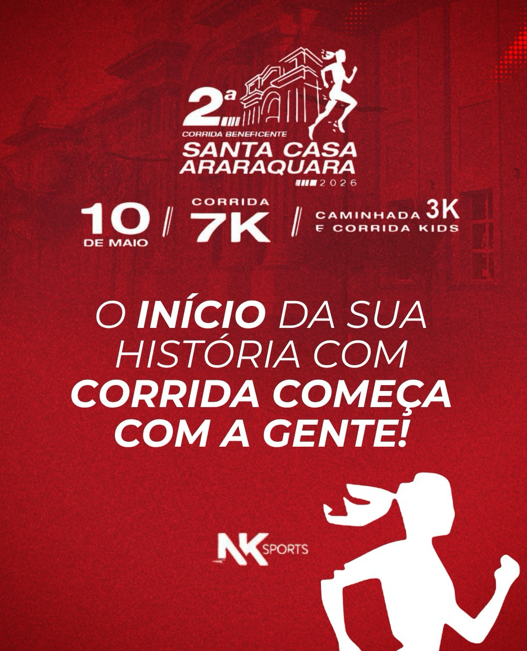 Inscrições através do link: https://www.ticketsports.com.br/e/2-corrida-santa-casa-araraquara-2026-85837.