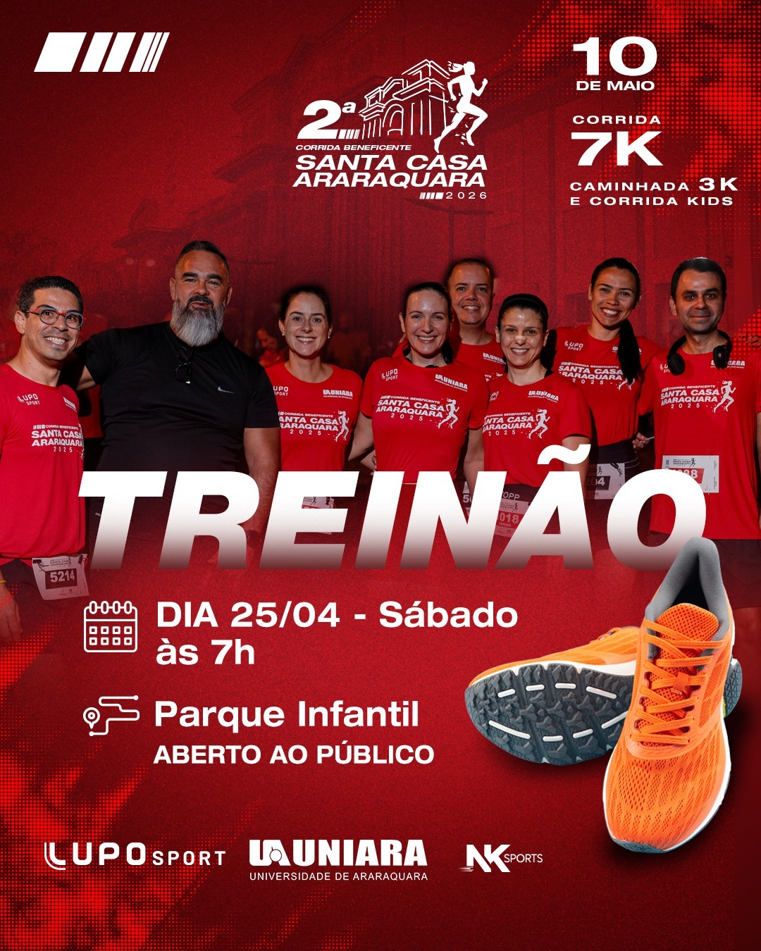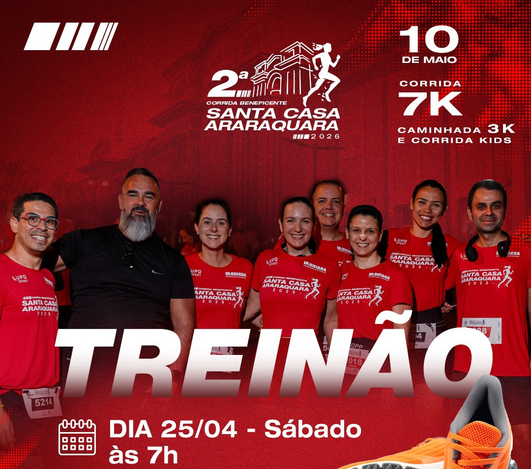 A contagem regressiva para a 2ª Corrida Beneficente da Santa Casa de Araraquara já começou e no sábado dia 25 de abril, às 7h da manhã, no Parque Infantil, acontecerá um treinão, com entrada gratuita e aberto ao público.