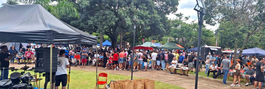 Foi um belíssimo evento: barracas de alimentação, bebidas, espaço para as crianças e até um show proporcionado pela banda Bruce Brothers, de Araraquara.