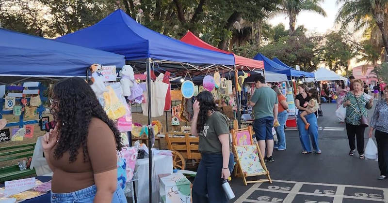 A feira gratuita reúne expositores de economia criativa, com uma ampla variedade de produtos, incluindo artesanato, discos de vinil, roupas e acessórios de brechó, além de opções gastronômicas.
