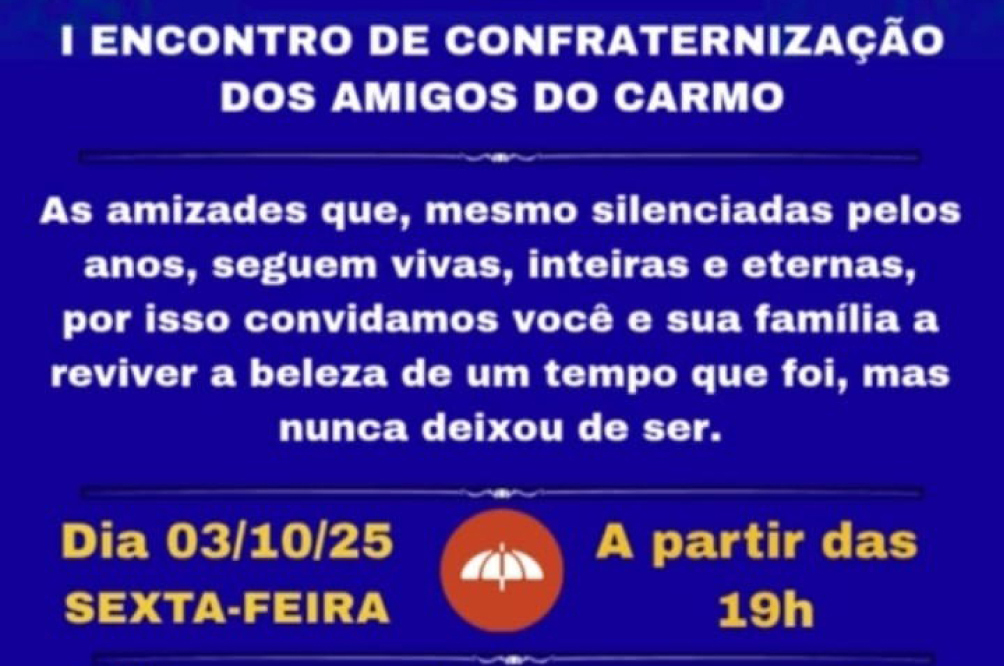 Formou-se uma comissão de Amigos do Carmo, para rever e lembrar das pessoas, comércio, escolas e tudo de bom que tinha – e tem – o nosso Bairro do Carmo, levando o nome de I ENCONTRO DE CONFRATERNIZAÇÃO DOS AMIGOS DO CARMO.