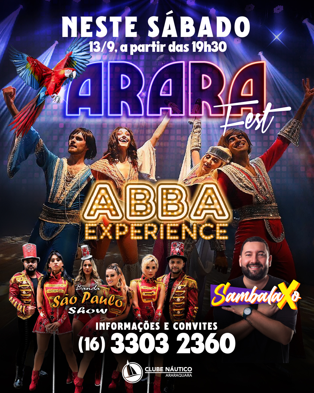 Neste sábado, 13 de setembro, tem ABBA Experience no Arara Fest do Clube Náutico Araraquara! A gente já está com as malas prontas para esta viagem no tempo!