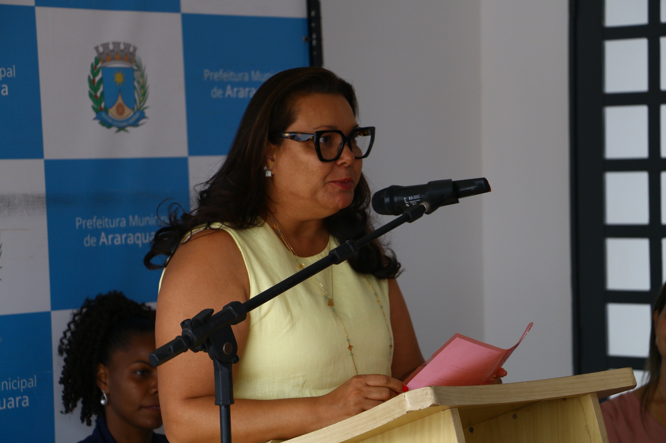 A mesa de honra foi composta pela anfitriã e chefe da unidade, Ana Cristina Simielli; pelo prefeito de Araraquara, Dr. Lapena; pelo vereador Marcelinho, representando a Câmara Municipal; pela vice-prefeita e secretária municipal de Desenvolvimento Social, Meire Laurindo; pela secretária municipal de Saúde, Emanuelle Laurenti; e pelo viúvo da homenageada, Antônio Carlos Teixeira, que participou do ato em nome da família.