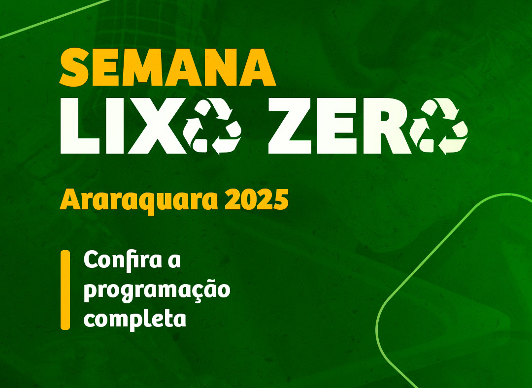 A Prefeitura de Araraquara, por meio da Secretaria Municipal de Meio Ambiente, com apoio das Secretarias da Educação, de Agricultura e Abastecimento e da Escola de Governo, e em parceria com a empresa EcoARES e a Casa Cairbar Schutel, realiza entre os dias 21 e 25 de outubro a Semana Lixo Zero de 2025. A iniciativa, organizada pelo Instituto Lixo Zero Brasil (ILZB), traz uma série de ações que têm como objetivo promover a mobilização cidadã, a educação ambiental e as práticas sustentáveis, trazendo reflexões sobre o consumo e a responsabilidade pelos resíduos.