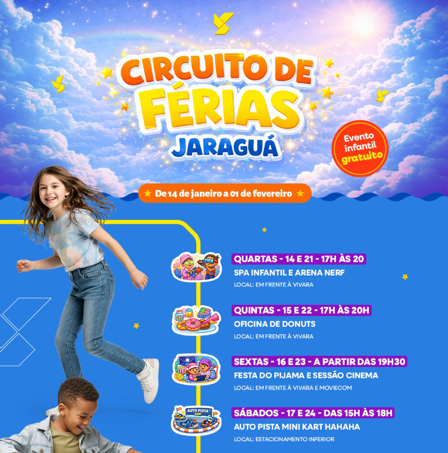 “O Circuito de Férias Jaraguá foi criado para ir além do entretenimento tradicional, com atividades lúdicas e diferenciadas que estimulam o brincar e a criatividade. Uma programação gratuita, pensada para garantir momentos de diversão para as crianças e boas experiências para toda a família durante as férias”, afirma.
