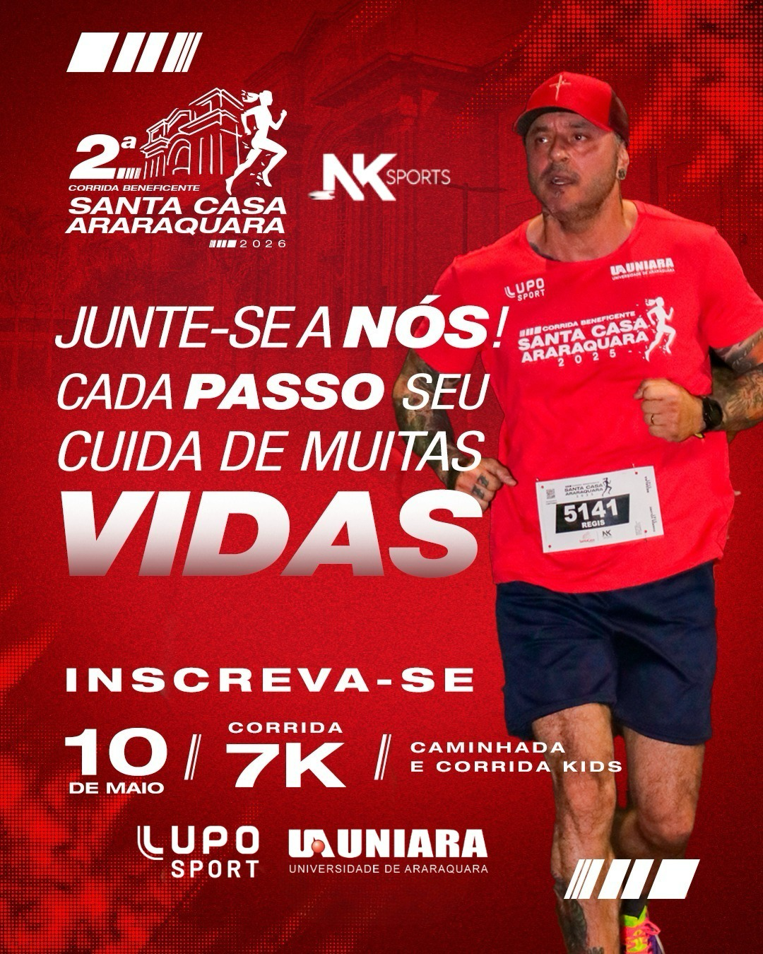 Inscrições através do link: https://www.ticketsports.com.br/e/2-corrida-santa-casa-araraquara-2026-85837
