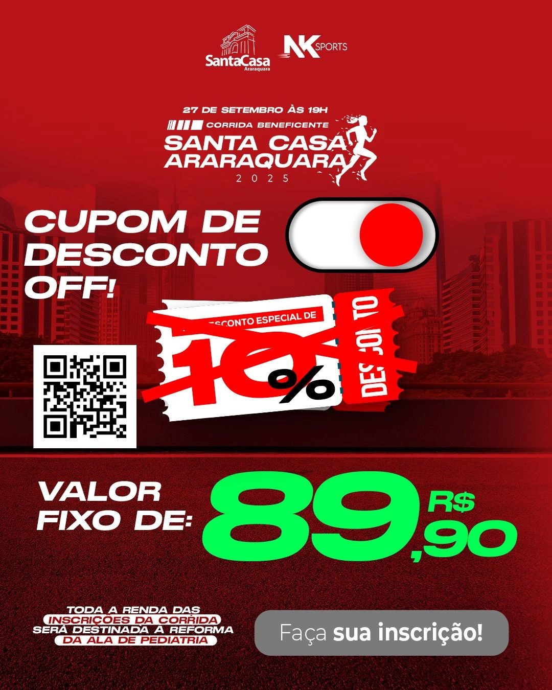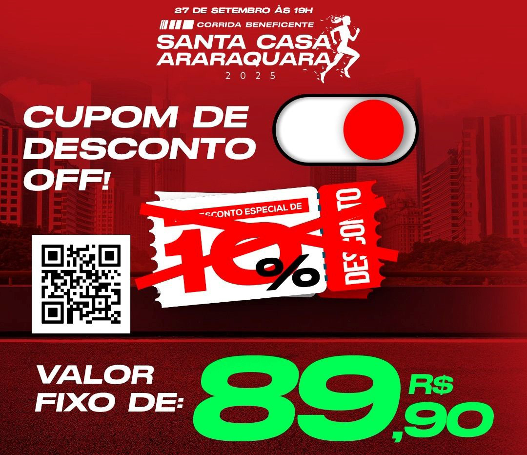 Inscrições através do link: https://www.ticketsports.com.br/e/CORRIDA%20SANTA%20CASA%20ARARAQUARA%202025-73450