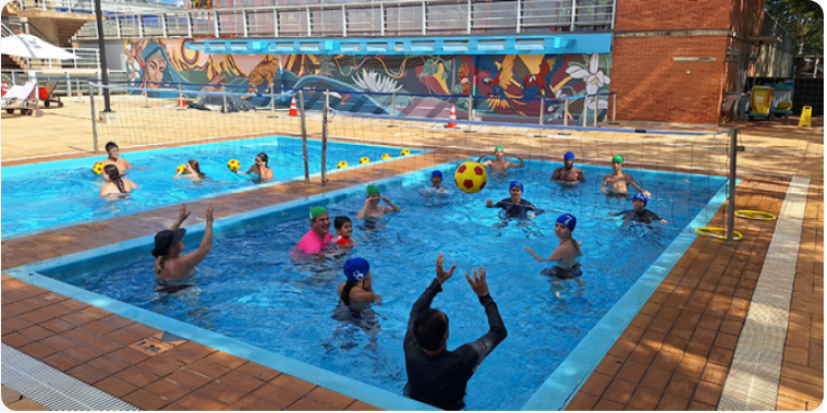 Vivências recreativas da modalidade para o público frequentador do Parque aquático.