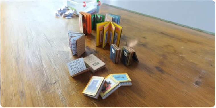 Um ateliê para crianças e adultos explorarem o universo das linguagens do objeto livro, experimentando materialidades, narrativas e leituras.
