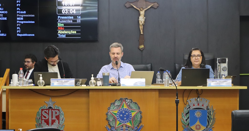 Dois textos tiveram análise adiada. O Projeto de Lei nº 76/2025, de Michel Kary (PL), foi adiado por um dia. A propositura quer obrigar a Prefeitura a instalar faixas elevadas para travessia de pedestres, popularmente conhecidas como lombofaixas, em frente às escolas públicas e privadas da cidade.
