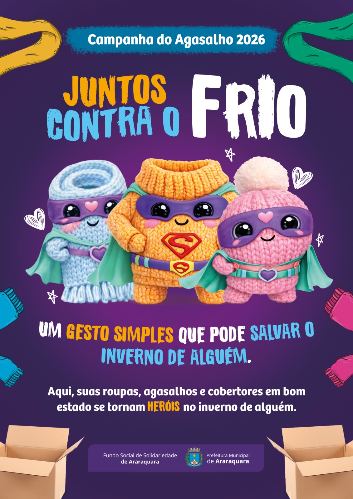 O Fundo Social de Solidariedade de Araraquara fará o lançamento oficial da Campanha do Agasalho 2026 nesta quinta-feira (9). Com o tema “Juntos Contra o Frio”, a ação pretende mobilizar a cidade num movimento de solidariedade em favor de quem mais precisa neste inverno. Serão 76 pontos de arrecadação espalhados pelo município, incluindo supermercados, lojas, farmácias e instituições de ensino.