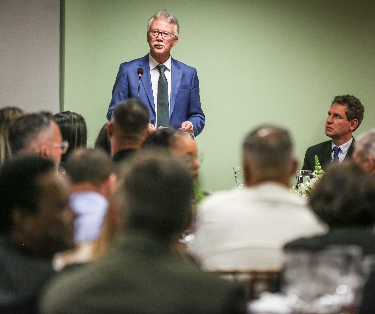 O presidente do Sinsaúde, Edison Laércio de Oliveira, discursa na cerimônia de posse