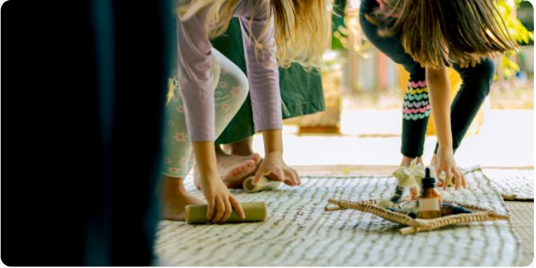 A vivência reúne crianças e seus responsáveis em um ciclo de atividades com ervas aromáticas, incluindo roda de cantigas, brincadeiras e a confecção de pindas-peteca — trouxinhas de ervas que estimulam o toque, a massagem e o brincar.