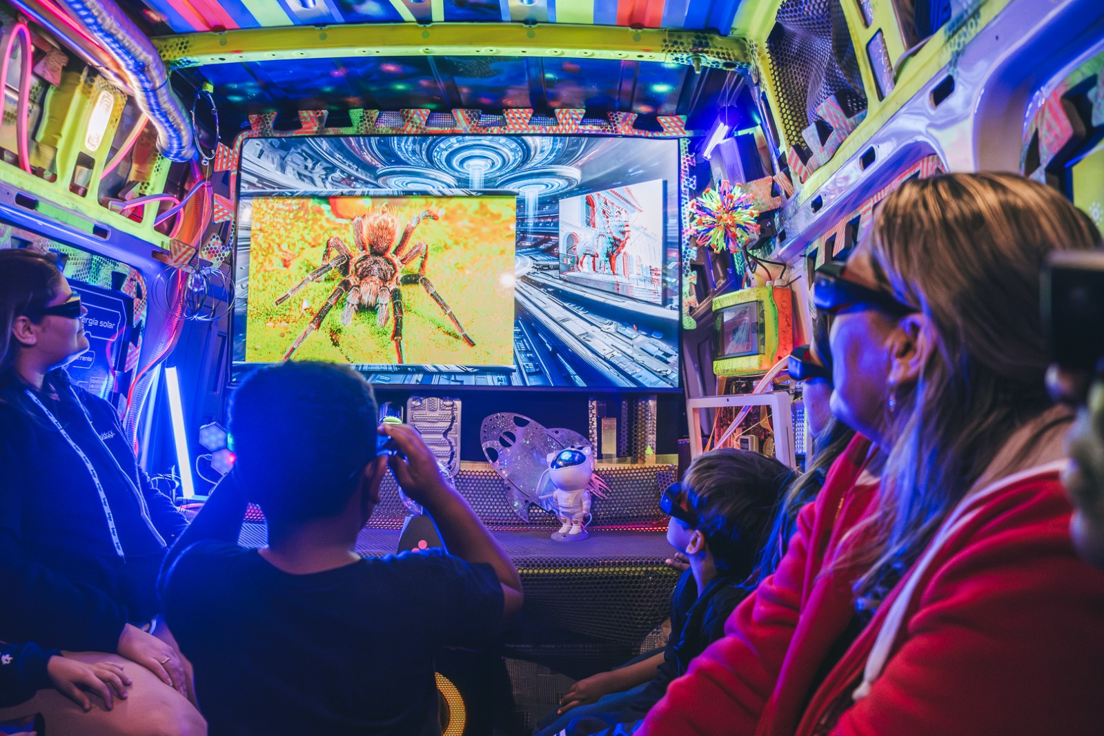 O furgão, uma estação móvel de ciências, arte, tecnologia, sustentabilidade e cultura de paz, é o protagonista responsável pela magia do CineSolar. O veículo é adaptado com placas fotovoltaicas no teto e carrega todo o cinema: cadeiras, banquetas, sistemas de conversão e armazenamento de energia, som, projeção e a própria tela. Com luzes coloridas, decoração de material reciclado e objetos interativos (como laser e bola de plasma), o espaço ensina, de forma lúdica, como a luz do sol se transforma em energia elétrica.