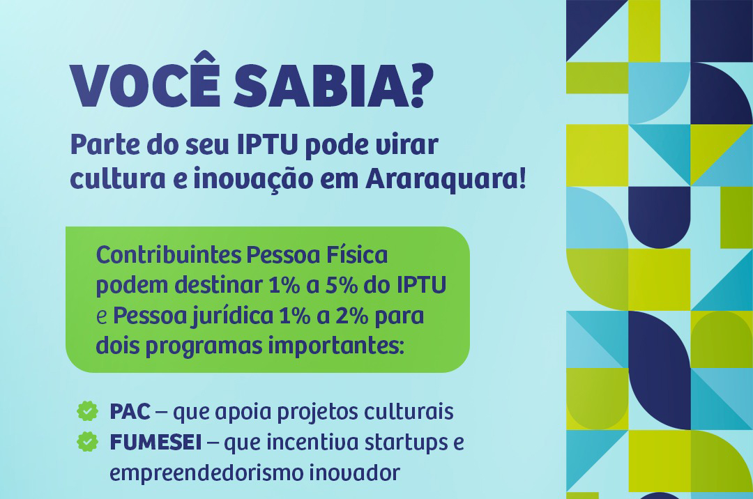 Destinação tributária permite que contribuintes colaborem com projetos culturais e startups de Araraquara Em Araraquara, os contribuintes podem optar por destinar parte do Imposto Predial