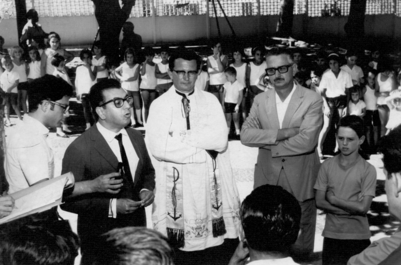 Geraldo Polezze, Migutel Tedde Netto, Cônego Storniollo, Prefeito Rubens Cruz e seu filho Rubinho, na década de 70. Floriano Peixoto, Paulo Salim Maluf e Silvio