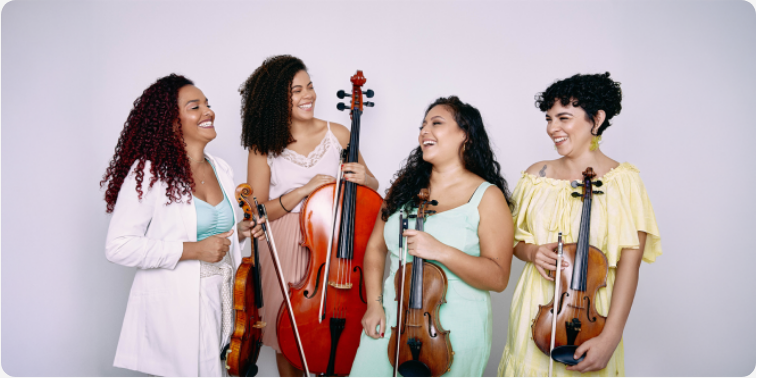 Quarteto Iracema Formado por Heloisa Oliveira (violino), Nádia Fonseca (violino), Jennifer Cardoso (viola) e Nathalia Sudário (violoncelo), o grupo pesquisa, estuda e apresenta ao público