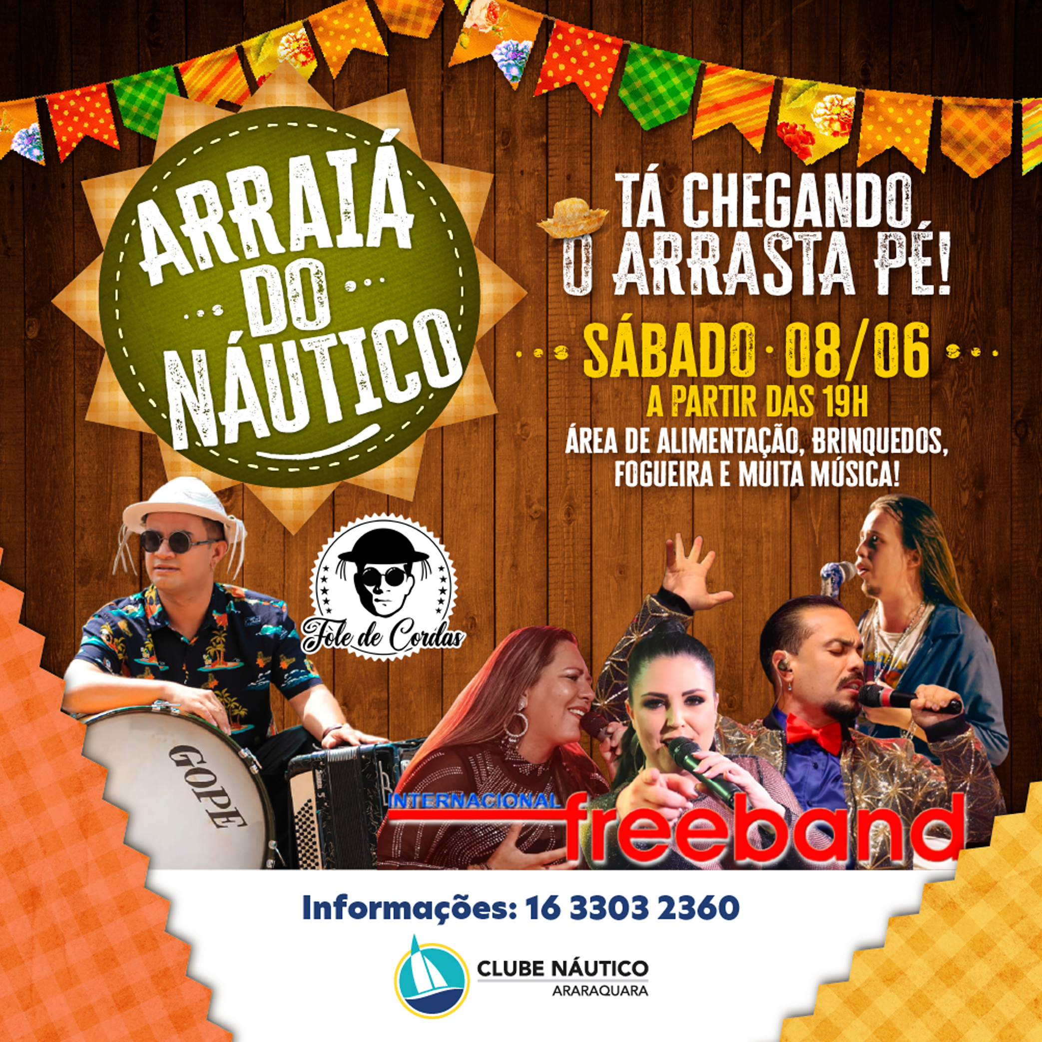 É neste sábado, 08 de junho. Não vai perder! Tá chegando a festança! Sábado, 08 de junho, tem Arraiá do Clube Náutico Araraquara, com fogueira,