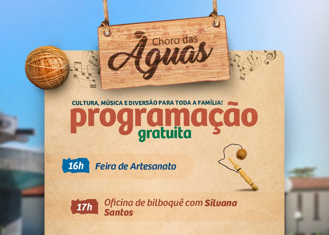 A programação começa às 16h com a Feira de Artesanato, seguida por oficina de bilboquê com Silvana Santos (17h) e show musical com Marcos Volpe e Nalini (18h).