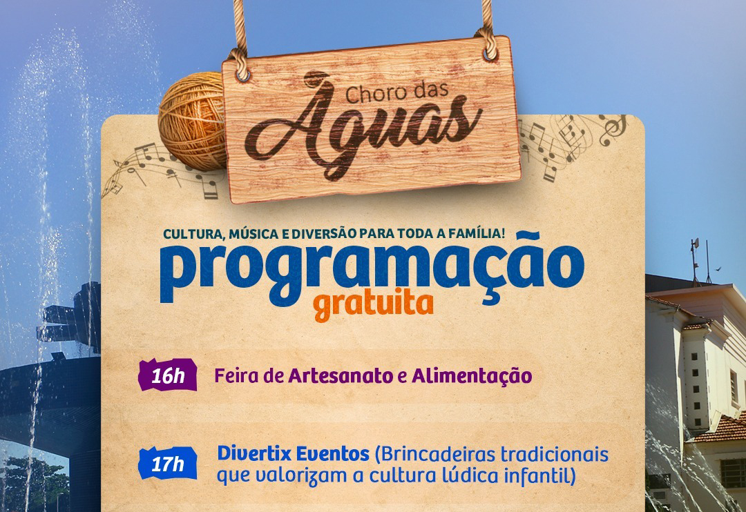 A programação do Choro das Águas é gratuita e realizada na Praça do DAAE – Fonte Luminosa, localizada na Rua Napoleão Selmi Dei, 26, na Vila Harmonia, próximo ao Gigantão.
