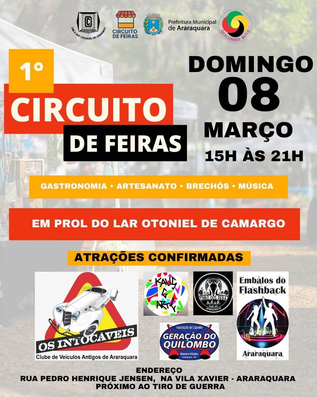 A feira propõe um espaço de entretenimento com artesanato, gastronomia, área Kids, exposição, apresentações artísticas e culturais – entre outras variedades. A programação gratuita tem o apoio da Secretaria Municipal de Desenvolvimento Econômico, por meio da Subsecretaria do Trabalho e Economia Criativa e Solidária e é totalmente em prol do Lar Otoniel de Camargo – instituição beneficente que acolhe idosos com dignidade e respeito, oferecendo atividades de assistência social.