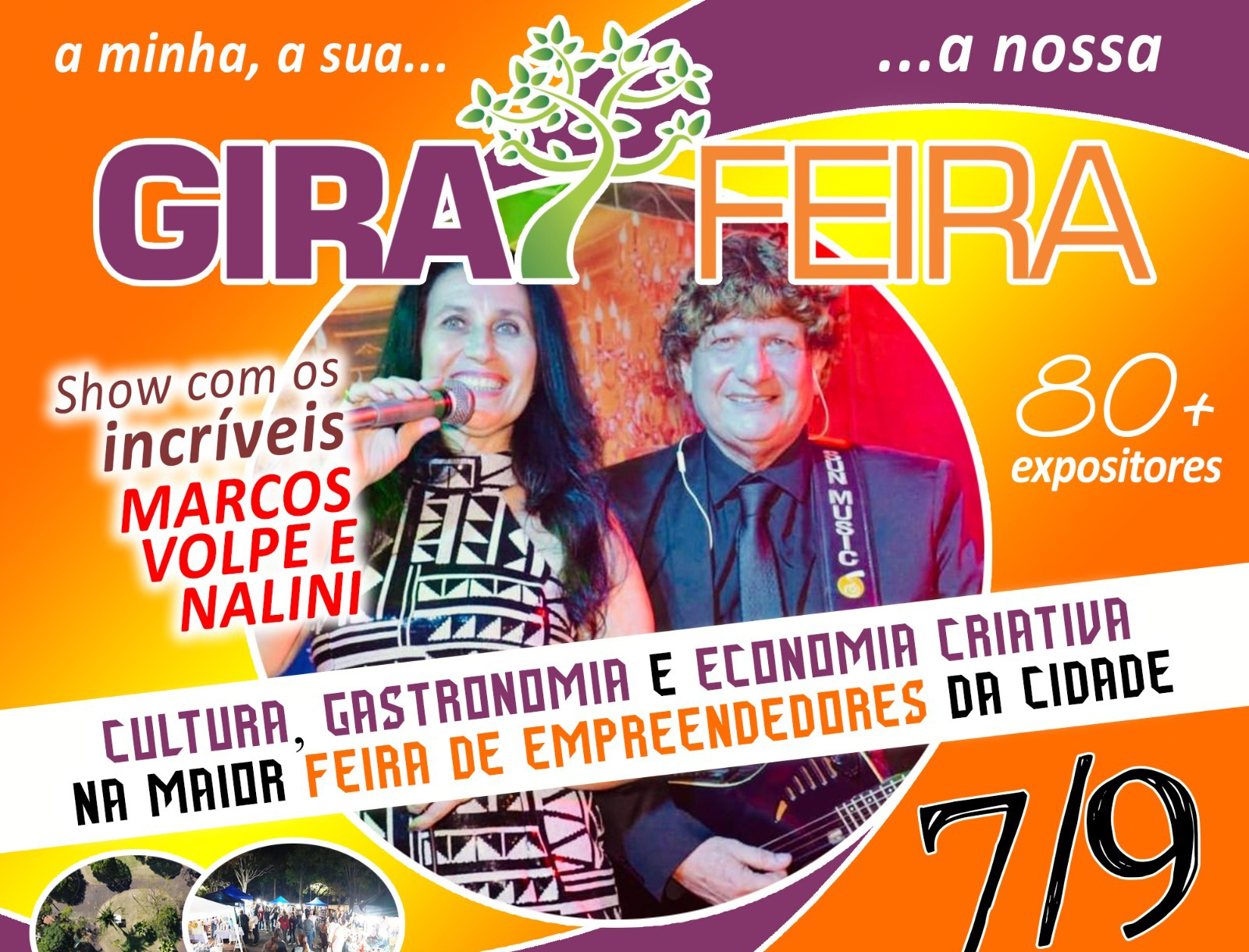 Show musical com Marcos Volpe e Nalini terá repertório das décadas de 60, 70 e 80; programação da feira segue das 17h às 22h