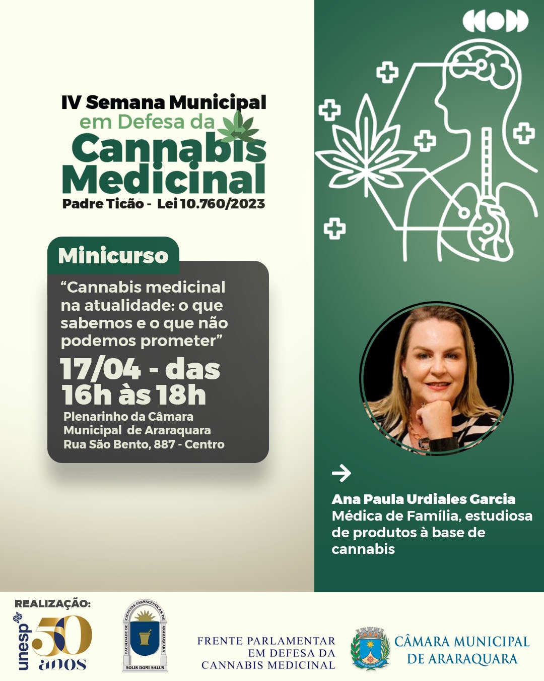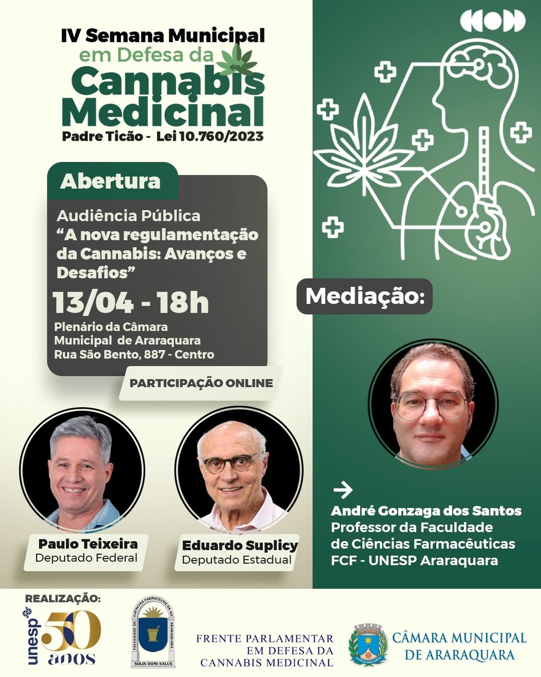 O evento é uma realização da Frente Parlamentar em Defesa da Cannabis Medicinal da Câmara Municipal de Araraquara em parceira com a Faculdade de Ciências Farmacêuticas (FCF) da Unesp Araraquara.