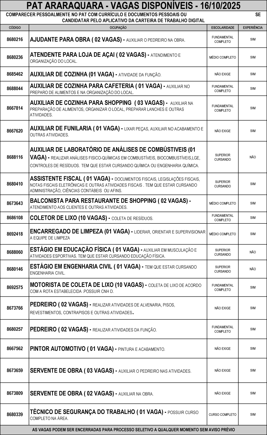 Comparecer pessoalmente no PAT com currículo e documentos pessoais ou se candidatar pelo aplicativo da carteira de trabalho digital. Com o app da Carteira de Trabalho Digital, o candidato encontra as melhores vagas e se candidata com apenas alguns toques!