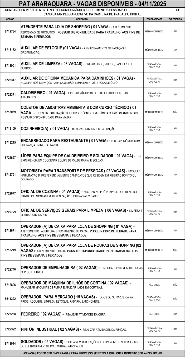 Comparecer pessoalmente no PAT com currículo e documentos pessoais ou se candidatar pelo aplicativo da carteira de trabalho digital. Com o app da Carteira de Trabalho Digital, o candidato encontra as melhores vagas e se candidata com apenas alguns toques!