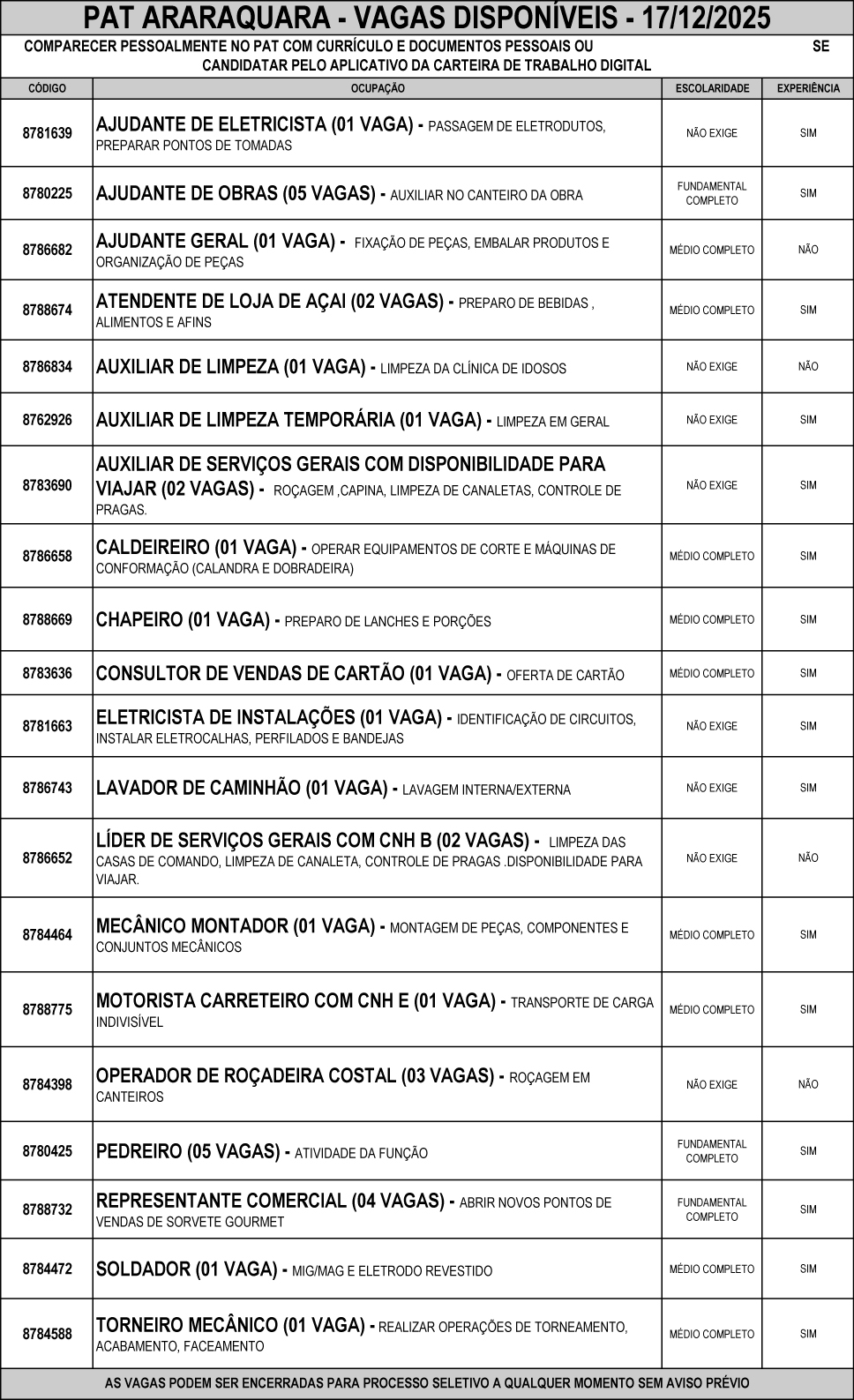 Comparecer pessoalmente no PAT com currículo e documentos pessoais ou se candidatar pelo aplicativo da carteira de trabalho digital. Com o app da Carteira de Trabalho Digital, o candidato encontra as melhores vagas e se candidata com apenas alguns toques!