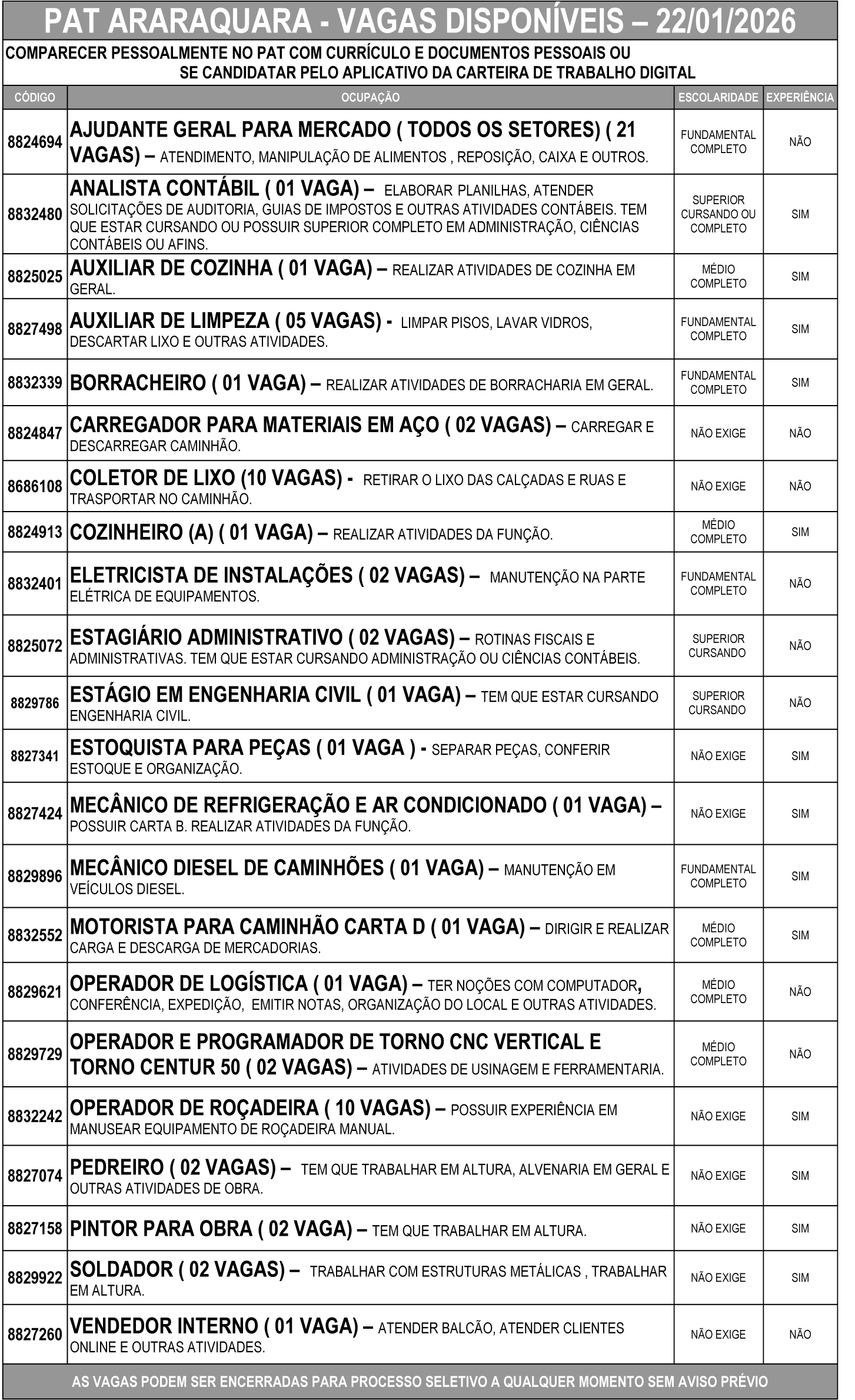 Comparecer pessoalmente no PAT com currículo e documentos pessoais ou se candidatar pelo aplicativo da carteira de trabalho digital. Com o app da Carteira de Trabalho Digital, o candidato encontra as melhores vagas e se candidata com apenas alguns toques!