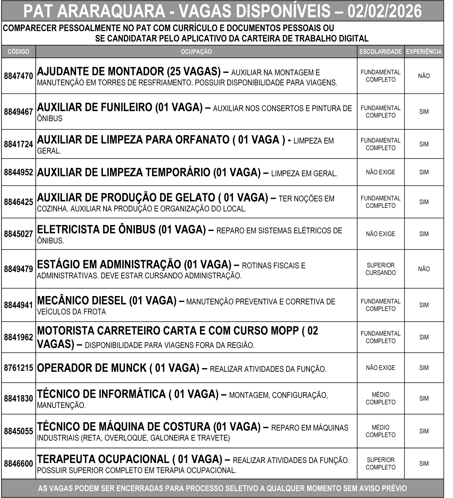 Comparecer pessoalmente no PAT com currículo e documentos pessoais ou se candidatar pelo aplicativo da carteira de trabalho digital. Com o app da Carteira de Trabalho Digital, o candidato encontra as melhores vagas e se candidata com apenas alguns toques!