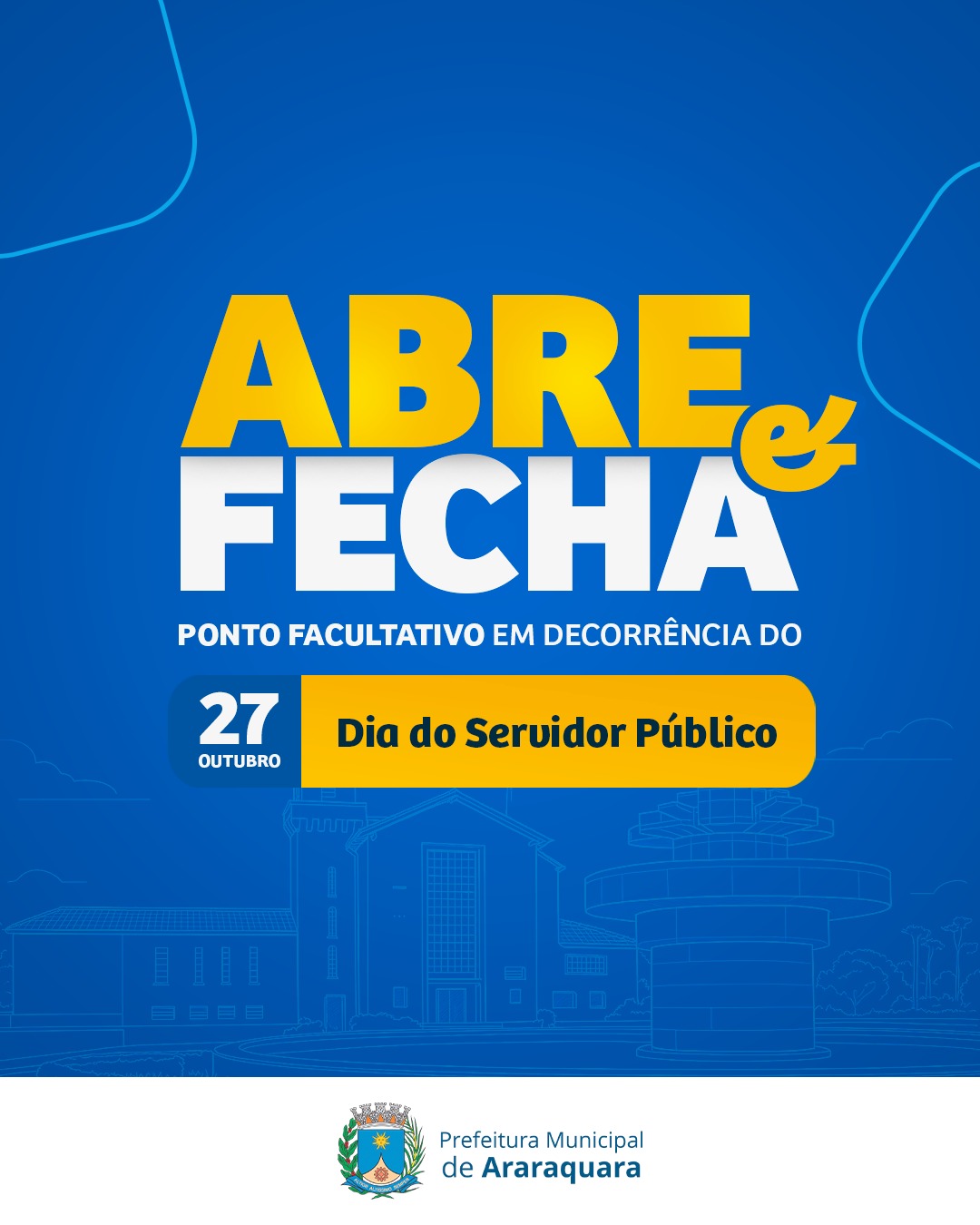 Desta forma, a Prefeitura de Araraquara fecha na segunda-feira (27) e retoma o atendimento na terça-feira (28). Os Postos de Atendimento da Prefeitura – na Vila Xavier, no Selmi Dei e a Procuradoria Municipal – assim como o Paço Municipal, retomam o atendimento ao público das 9h30 às 16h30.