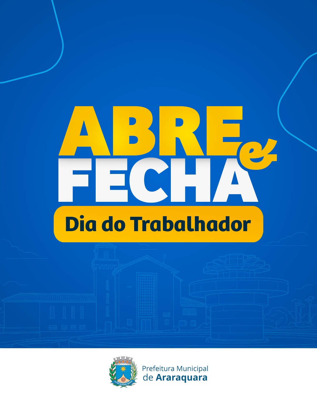 Nesta semana, em razão do feriado do Dia do Trabalhador na sexta-feira (1º de maio), a Prefeitura de Araraquara segue com as atividades até quinta-feira (30 de abril), retomando o atendimento na segunda-feira (4 de maio).