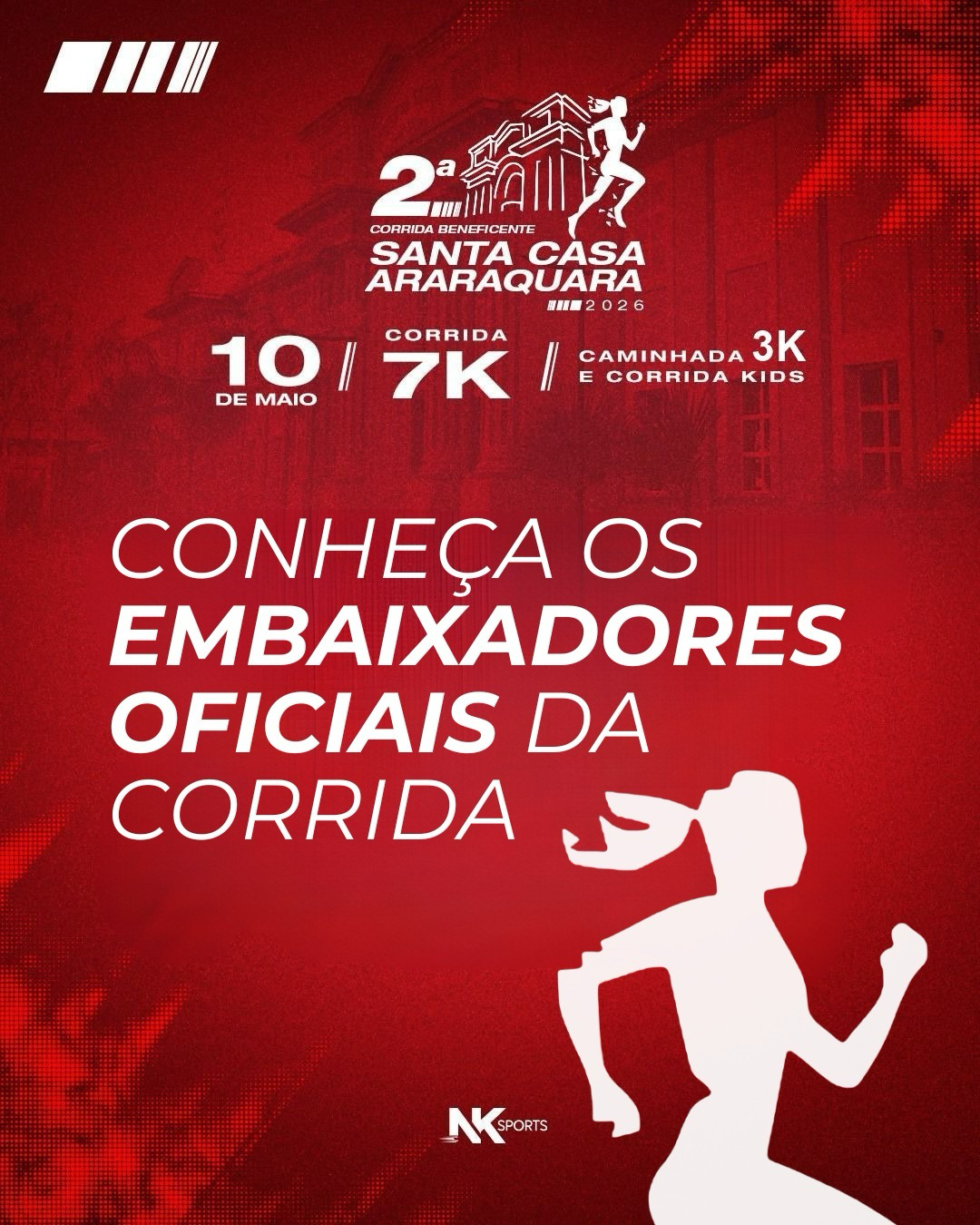 Acesse o link https://www.instagram.com/p/DWzheAPDhvF/?igsh=MWZ6NTNwdGViMDE3Ng== e conheça os embaixadores oficiais da 2° Corrida Beneficente da Santa Casa de Araraquara.
