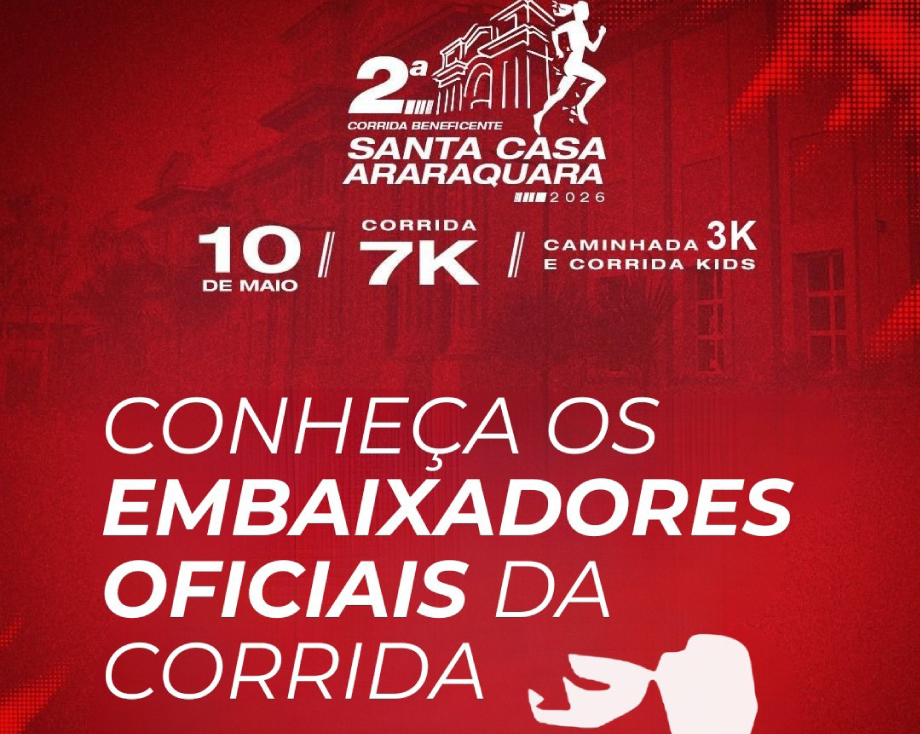 Acesse o link https://www.instagram.com/p/DWzheAPDhvF/?igsh=MWZ6NTNwdGViMDE3Ng== e conheça os embaixadores oficiais da 2° Corrida Beneficente da Santa Casa de Araraquara.