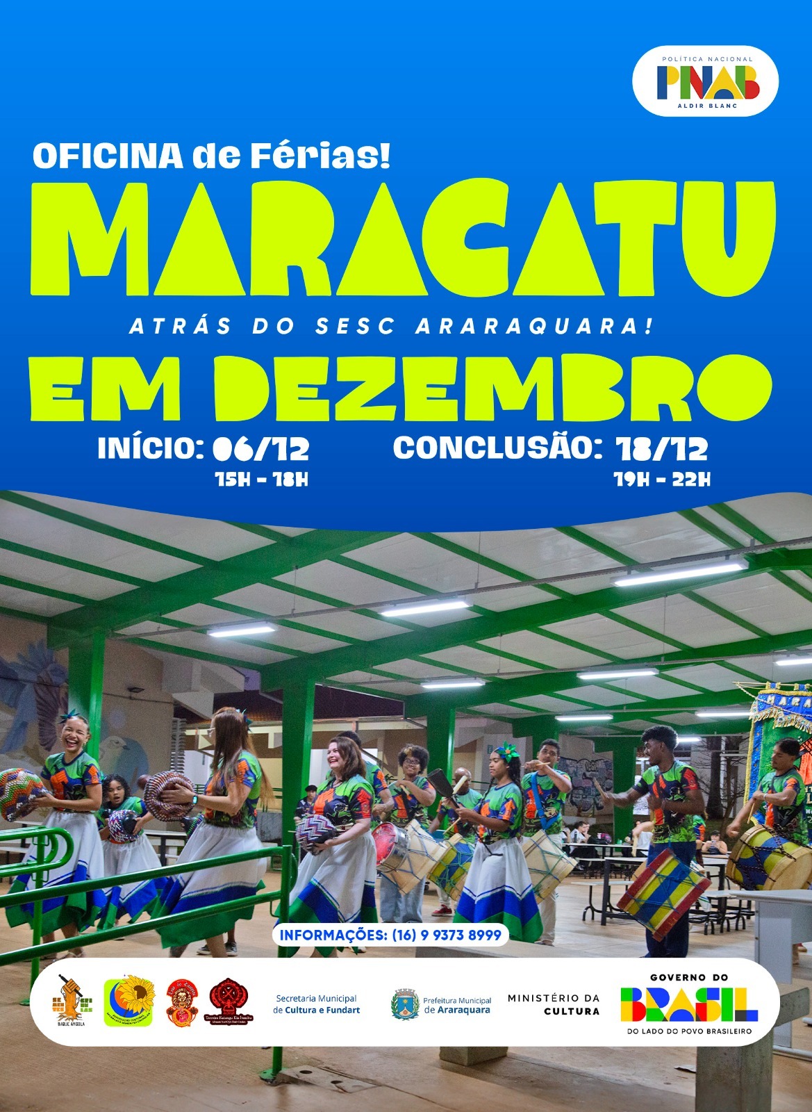 Vai começar a Oficina de Férias de Maracatu com o grupo Sementes Crioulas. Os encontros gratuitos serão realizados entre os dias 6 e 18 de dezembro na Rua Ivo Dall’acqua, no Jardim Quitandinha (atrás do Sesc), sem necessidade de inscrição.