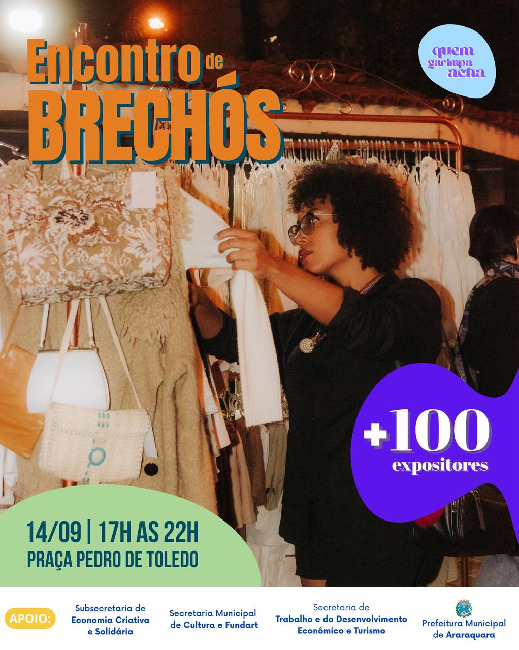 O Encontro de Brechós é uma realização do Coletivo Quem Garimpa Acha e conta com apoio da Prefeitura de Araraquara, por meio da Secretaria de Trabalho e do Desenvolvimento Econômico e do Turismo, via Subsecretaria de Economia Criativa e Solidária, e da Secretaria Municipal de Cultura e Fundart com o apoio nas atividades artísticas.