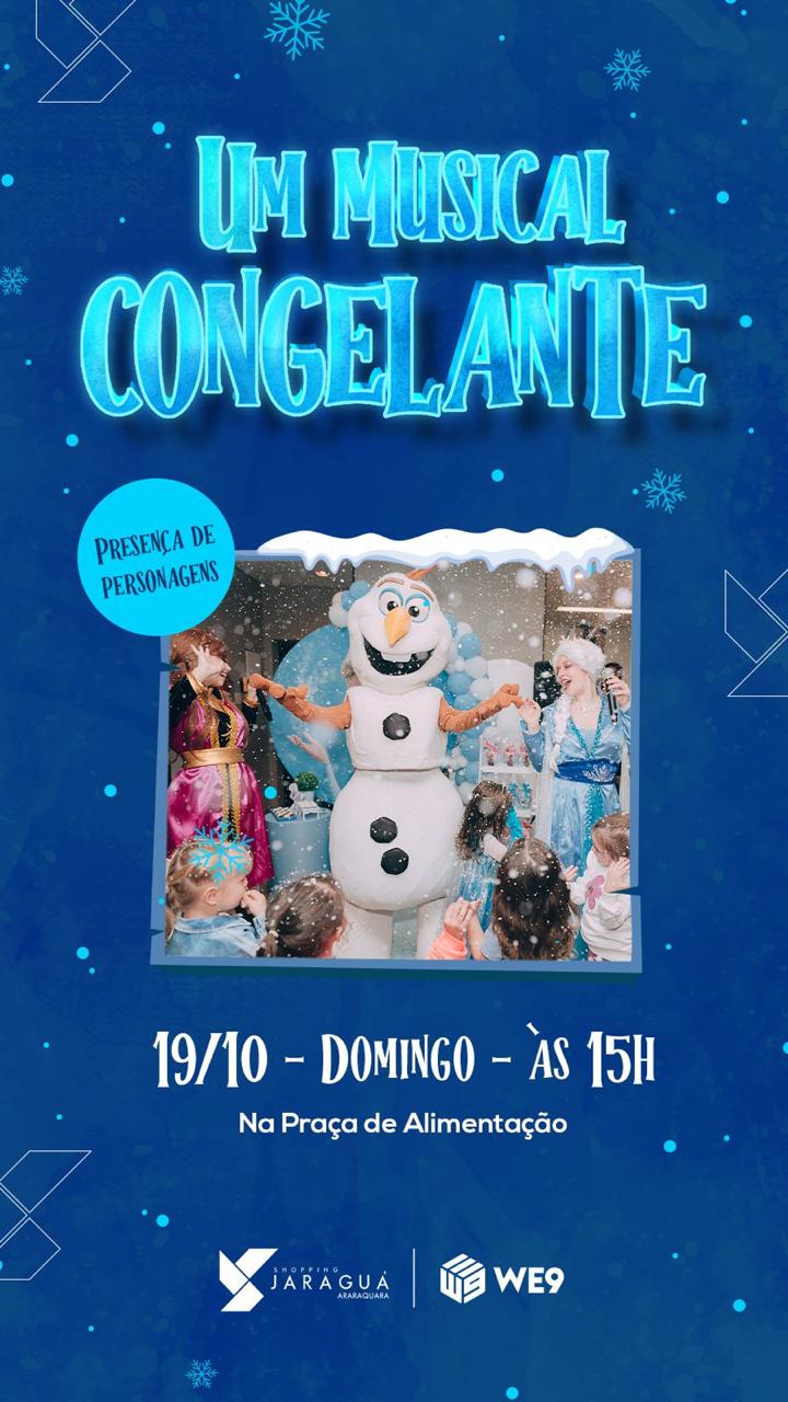 A programação cultural do Shopping Jaraguá Araraquara contempla as famílias da região com o espetáculo “Um Musical Congelante”, neste domingo (19), na Praça de Alimentação, a partir das 15h. O evento é gratuito.