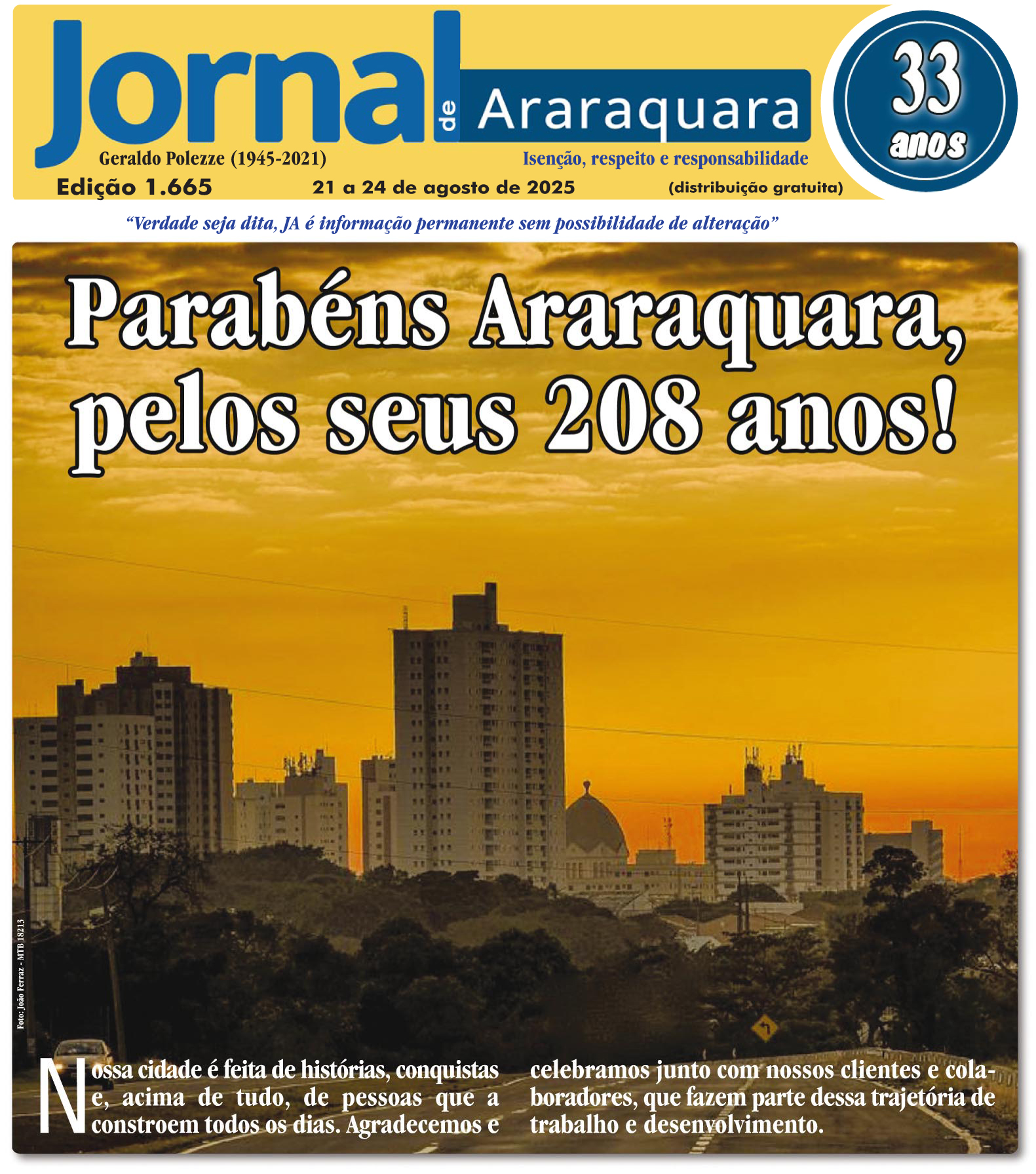 (EDITORIAL) Araraquara, 208 anos