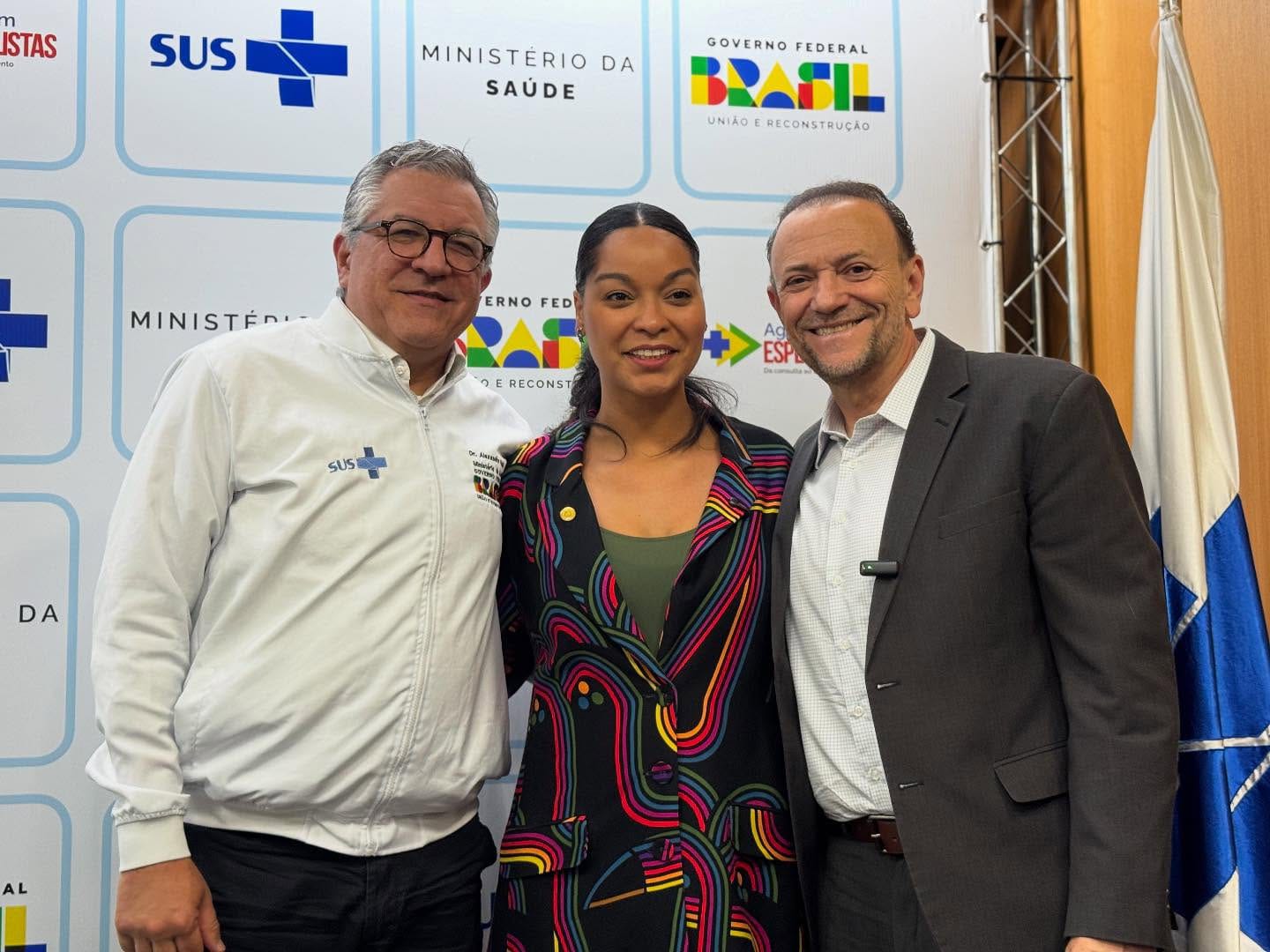 O ministro da Saúde, Alexandre Padilha; a deputada estadual Thainara Faria (PT) e Edinho Silva, o ex-prefeito e presidente nacional do PT