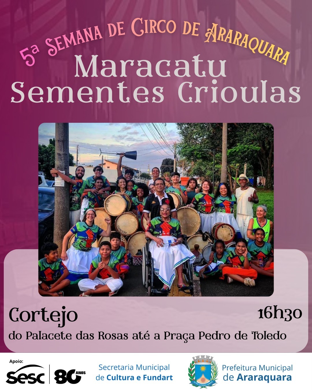 Vale destacar que a programação teve inicio no último dia 27 de março, celebrando a arte circense com apresentações e oficinas ministradas por artistas da cidade e região. O evento gratuito é realizado pela Secretaria Municipal de Cultura, Fundart e Coletivo Cirqueir@s, com apoio do Sesc Araraquara e verba de emenda parlamentar oriunda da vereadora Fabi Virgílio.