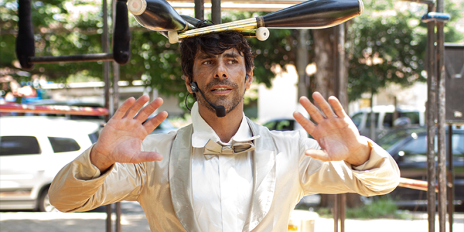 Performances de contorcionismo, parada de mão, acrobacia de solo e malabarismo, acompanhadas por composições autorais e clássicas.