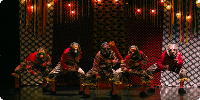 O espetáculo propõe explorar a corporeidade de três manifestações culturais latino-americanas: a Fiesta de la Tirana (Chile), a Huaconada (Peru) e o Cavalo-Marinho (Brasil), em fusão com a Dança e o Teatro. A visualidade da obra é marcada por cores vibrantes e seis máscaras de “Fofão”, personagem emblemático do Carnaval Maranhense, que contribuem para a construção estética das personas.