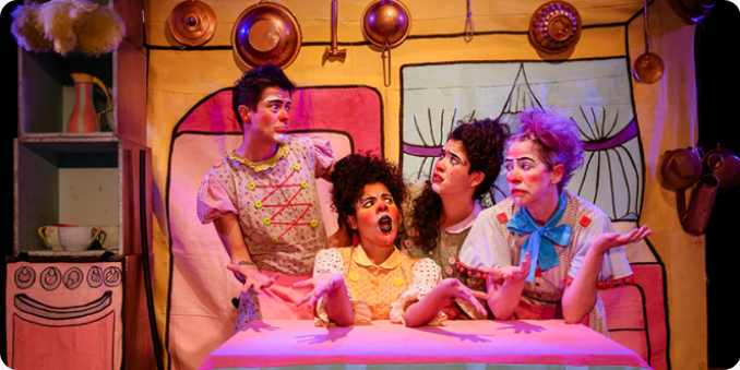 Quatro palhaças encaram mais um dia de mesmice dentro de casa: limpar, passar, cozinhar e Peraí? Cadê a Maria?! Com o sumiço da amiga Maria, são obrigadas a enfrentar o tão temido FORA, um lugar que não foi feito para elas, onde mulher nenhuma pode se aventurar. Será?