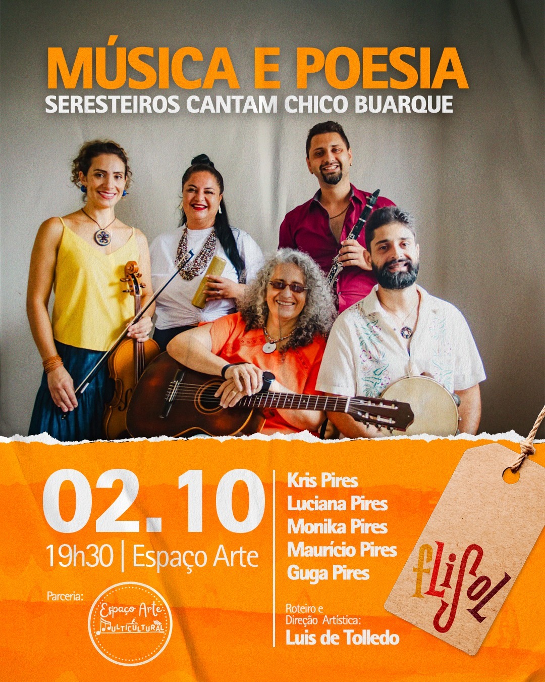 O grupo Seresteiros apresenta a família Pires – com Kris, Luciana, Monika, Maurício e Guga – sob direção de Luís de Toledo (Lilico), em uma noite de emoção e beleza, celebrando a força da música e da poesia na obra do cantor, compositor, violonista, dramaturgo e escritor brasileiro Chico Buarque.