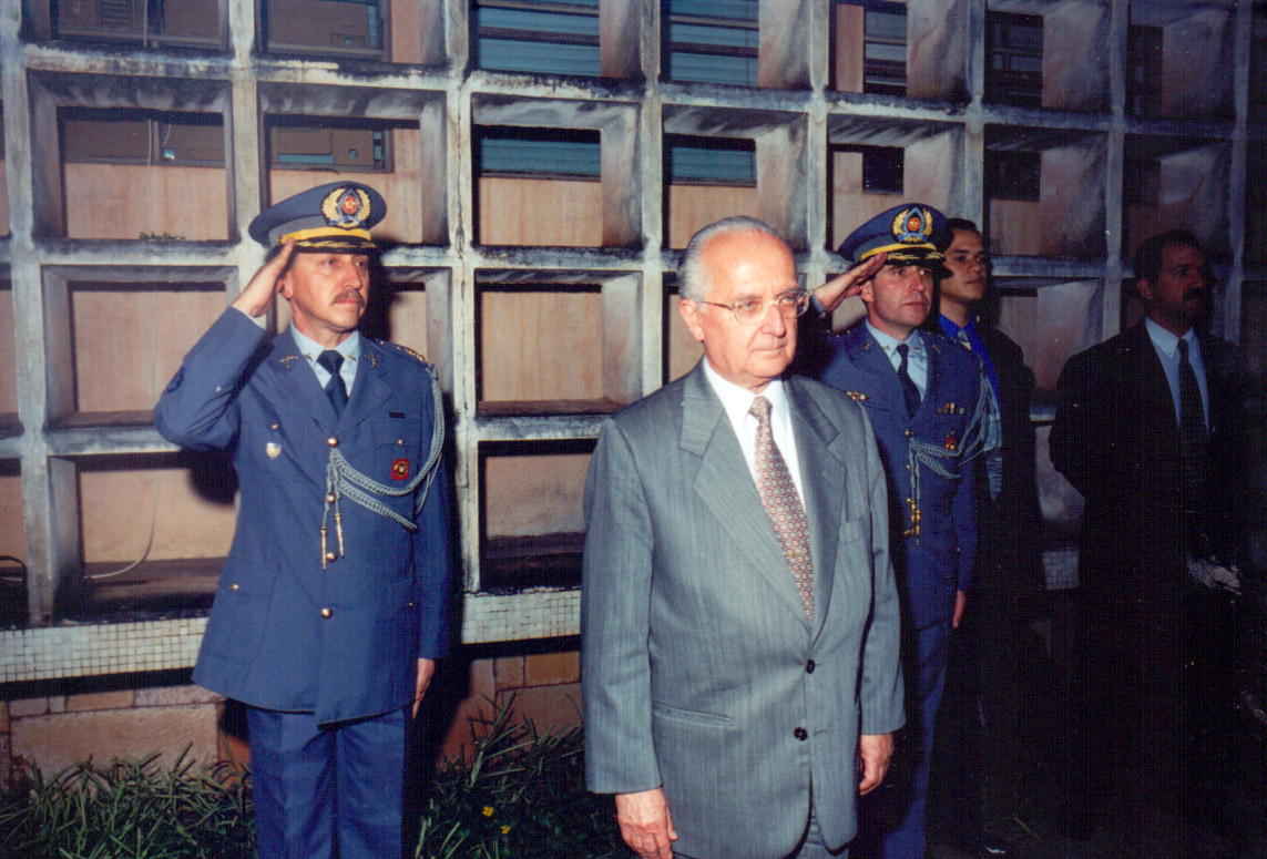 Desembargador Dirceu de Mello em apresentação à execução do Hino Nacional pela Banda Musical Regimental da Polícia Militar em 10 de dezembro de 1998.