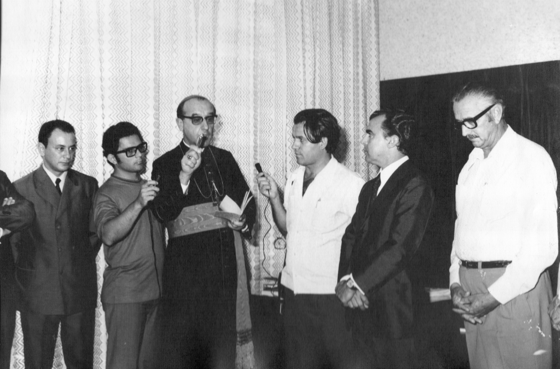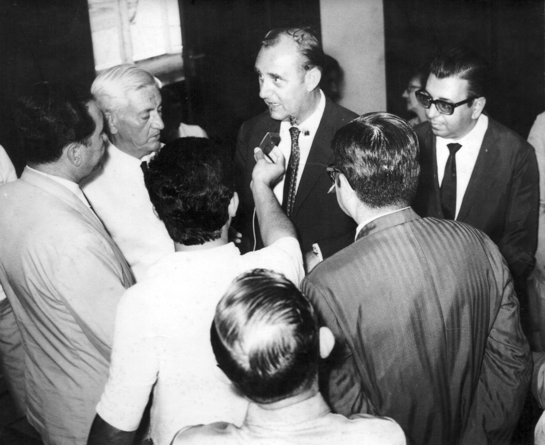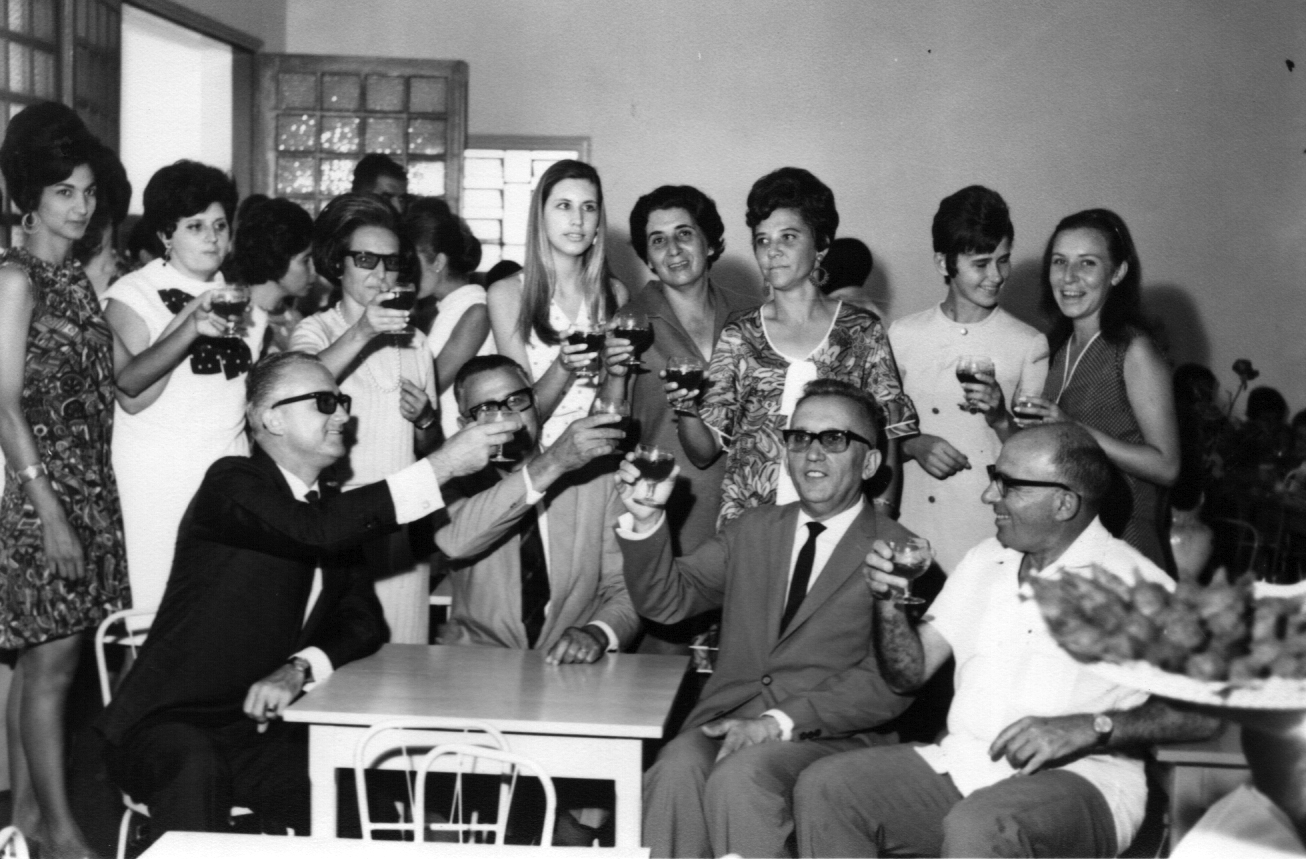 Visita do Cônsul Britânico à Araraquara Mr. Harry Holmes em 24 de novembro de 1969: Hermínio Pagotto (vice-prefeito), Dr. Otávio de Arruda Camargo (diretor de Pinheirinho) e Miguel Tedde Netto, vereador e presidente da Beneficência Portuguesa.