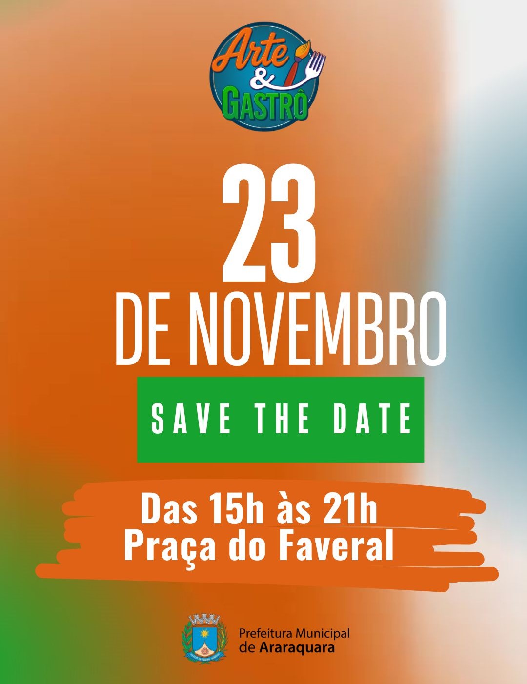A Feira Arte & Gastrô será realizada neste domingo, 23 de novembro, na Praça do Faveral, a Praça Roque José Hage, na Vila José Bonifácio, das 15h às 21h, com diversas atrações para toda a família.