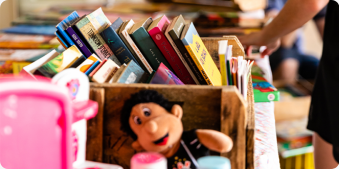 Separe seus livros e brinquedos, em bom estado, e venha trocá-los por novas possibilidades de aventura, diversão e conhecimento.